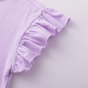 T-shirt fille à bretelles volantées, tissu en coton. Vêtements de fille. Couleurs rose, lilas et violet. Fabriqué à 95 % en coton