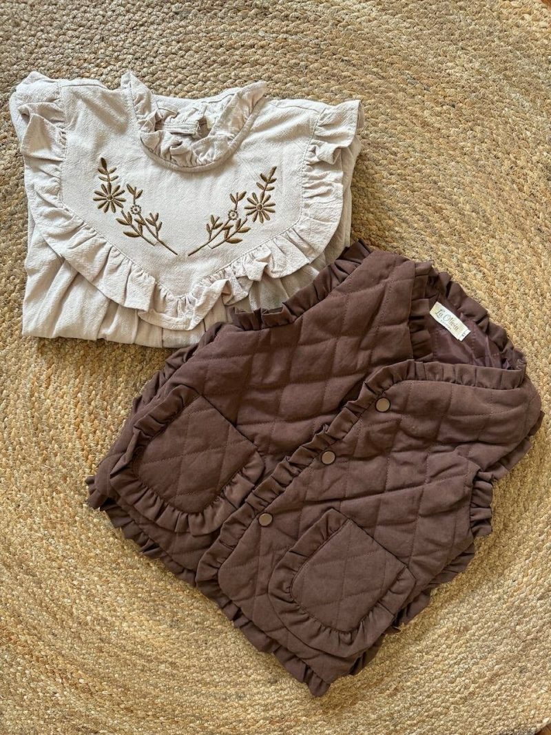 Ajoutez une touche de chaleur charmante à la garde-robe de votre enfant avec notre gilet Piper Ruffle. Ce gilet élégant est conçu pour offrir confort et élégance, ce qui en fait une pièce parfaite à superposer en toute saison.
