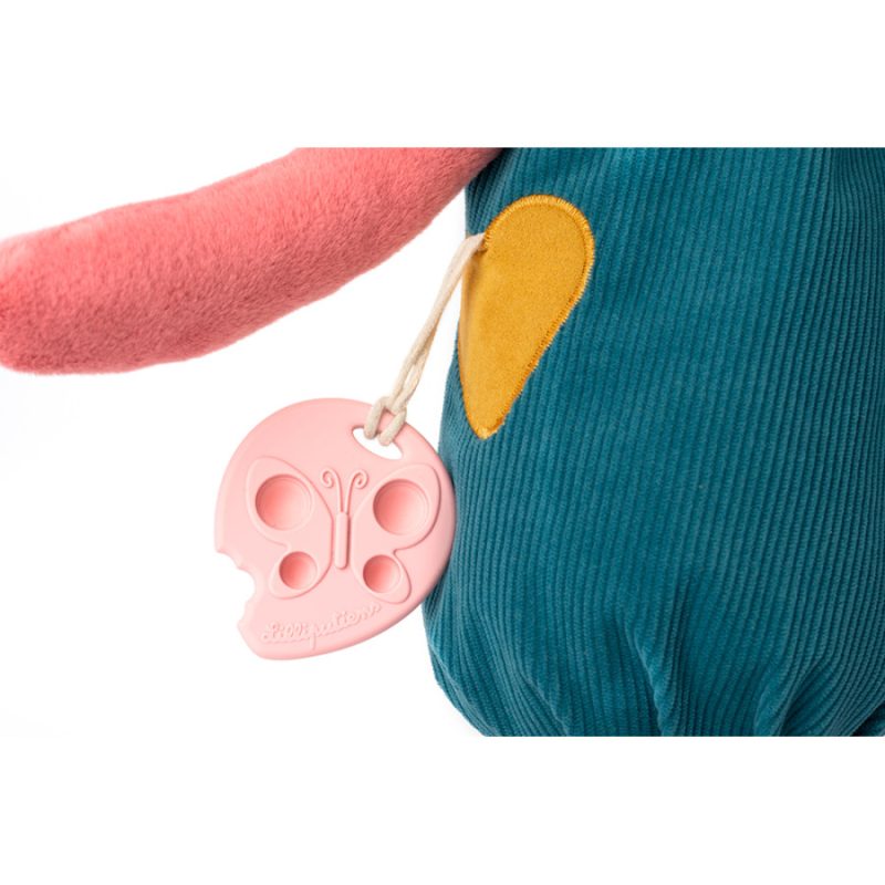 Avec son style décontracté, toujours accompagnée de ses amies les souris, voici Jeanne : la jardinière de la joyeuse bande Lilliputiens. Cette maxi peluche chat de 87 cm propose 5 activités. Vous pouvez la proposer en décoration ou comme compagne de jeu aux plus petits dès l’âge de 6 mois. Notre félin malicieux est doté d’une poignée en guise d’oreille, pour facilement l’emporter partout ! Votre enfant ne se lassera pas de caresser la douce frimousse de Jeanne et s’installera confortablement contre elle pour de gros câlins ! De plus, la grande peluche rose dispose de nombreuses activités d’éveil comme une clochette amusante dans la tête, du papier bruissant dans une oreille, un anneau de dentition en silicone détachable avec activité de popping, ou encore un miroir rond pour s’admirer. Enfin, Jeanne est accompagnée d’une souris en peluche à faire tinter joyeusement. Elle aime quitter la maison pour suivre le chat au jardin, mais rentre toujours à l’heure pour le goûter ! En plus de joliment décorer la chambre de votre bambin et d’être toujours disponible pour les câlins ; cette peluche géante lui permet de développer son acuité visuelle et auditive, et favorise la découverte tactile grâce aux nombreuses activités à explorer. Avec ses détails bucoliques, ses couleurs apaisantes, ses matières riches et agréables, et ses nombreuses activités, la peluche Découvertes Jeanne le chat égayera la déco de chambre de votre enfant, qui ne manquera pas de la câliner. On adore son pantalon baggy, son bandana, ses longues jambes et ses moustaches colorées ! Ce jouet d’activités se lave facilement en machine à 30° après avoir retiré la feuille en silicone. Égayez dès maintenant l’espace jeu de votre petit bout !