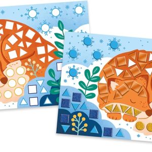 Un manteau blanc recouvre le paysage, et des mosaïques embellissent les images : c’est là qu’est toute la poésie de ce kit créatif pour les enfants dès 5 ans. Plongez en famille dans les merveilles de l’hiver, de sa neige scintillante et de sa faune si paisible. Ce coffret créatif permet aux enfants de développer leur concentration, leur patience et leur minutie ; mais aussi, et surtout, d’exprimer leur créativité. Au programme de cette activité mosaïques, 3 tableaux sont à décorer. Ils seront du plus bel effet une fois terminés ! Pour apporter du relief aux décors enneigés, les enfants disposent de 6 planches de mosaïques mousse prédécoupées. Leur atout, ce sont leurs effets visuels différents : mats, pailletés, holographiques et métalliques. Quant à leur texture mousse, elle rend l’activité très agréable et facilite la manipulation des mosaïques. Ce loisir créatif plonge les enfants dans des décors enchantés. Ainsi, ils découvrent un ours et son petit admirant le ciel étoilé, un renard des neiges assoupi et des animaux des sous-bois de sortie au lever du jour. Bien pensé, les modèles et instructions sont imprimés à l’intérieur de la boîte. Cette activité manuelle est idéale pour inviter les petits au calme et à l’expression créative. Elle réchauffera vos journées d’hiver tout aussi bien qu’elle occupera les enfants pour un moment de détente ! Il faudra compter environ 30 minutes pour embellir chaque tableau.