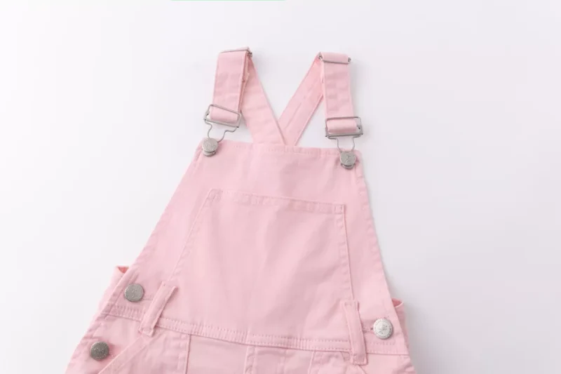 Salopette longue fille en jean, dotée de deux poches latérales et d’une poche plaquée devant. Couleur denim rose clair. Vêtements de fille. Fabriqué à 70 % en coton ; 28 % polyester ; 2% élasthanne